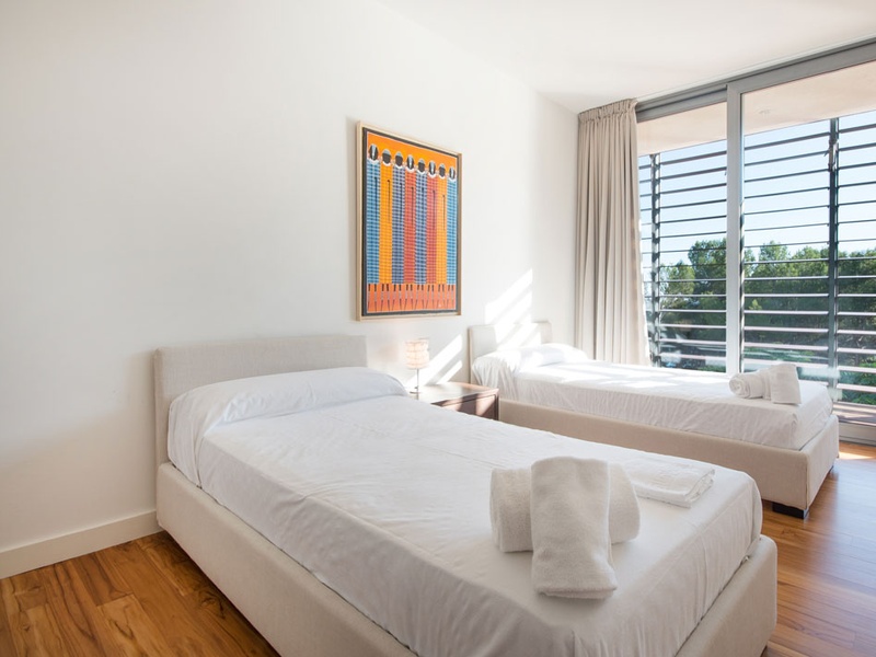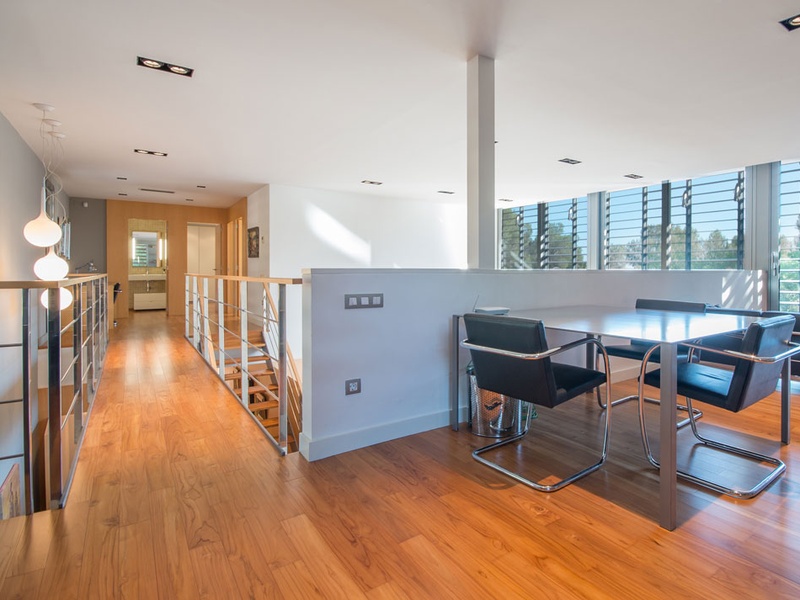 Вилла имеет удобную внутреннюю планировку: на верхнем этаже распологаются три двухместные спальни и две ванные комнаты, библиотека и небольшой кабинет , который при необходимости может быть исползован как спальня.