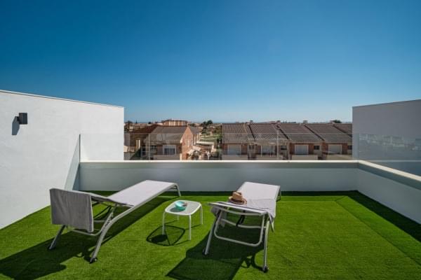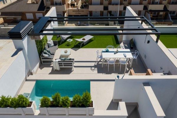 Новые бунгало на первом или втором этаже в городе Пилар-де-ла-Орадада. Дома построены в современном стиле используя современные материалы. В комплексе есть общий бассейн и частная парковка. Рядом находятся все необходимые услуги. До пляжа 1 км.