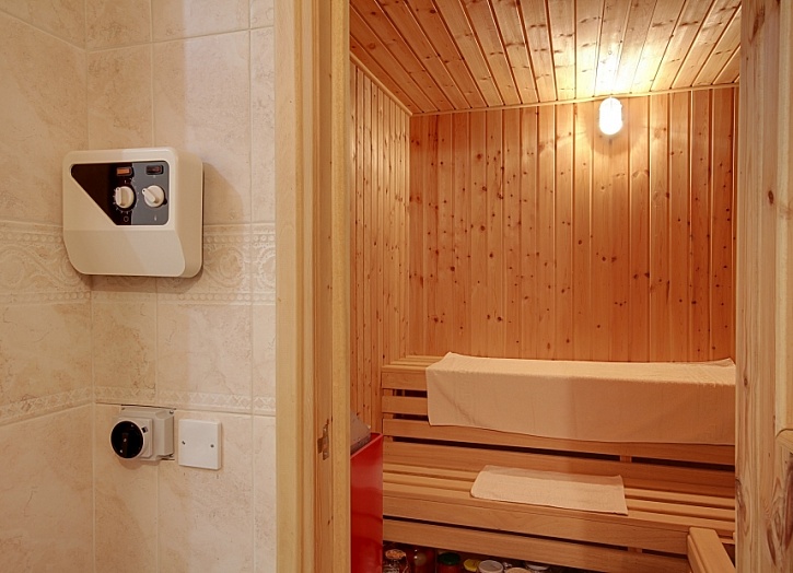 С первого этажа лестница ведет вниз в полуподвальное помещение с сауной, кабинетом, прачечной и кладовками.
