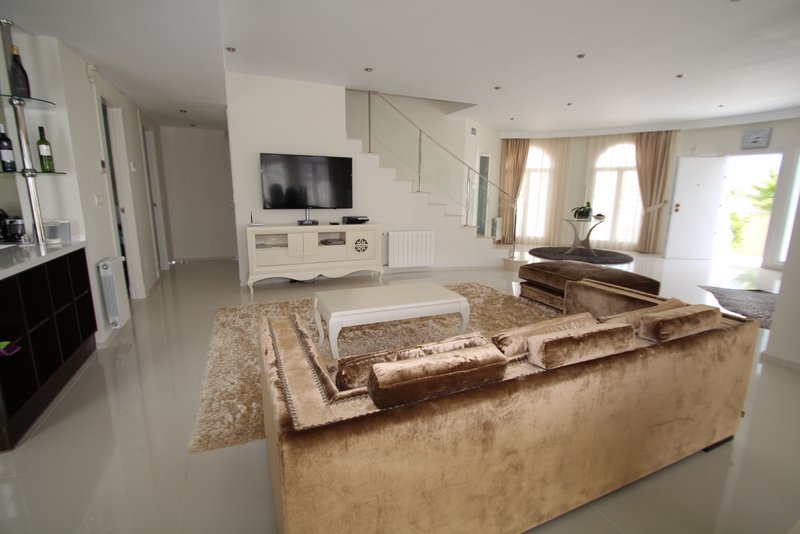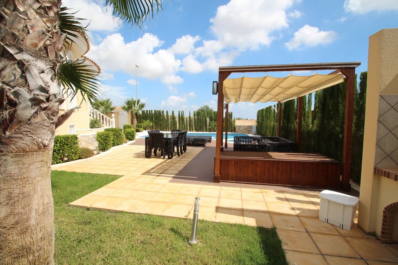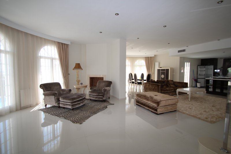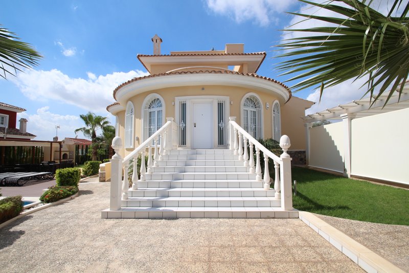 Эксклюзивная вилла в резиденции "Донья Пепа" в Сиюдад Кесада. Участок 760 м2, Жилая площадь 380 м2, 5 Спален, 4 Ванных комнаты, Обширный салон с камином, Большая кухня, Игровая комната с бильярдным столом, Домашний кинотеатр, SPA в подвальном помещении - Сауна и Хамам, Винный погреб, Большой бассейн с джакузи, Зона для барбекю с беседкой, Крытая парковка, Террасы, Солярий с видом на парковую зону и море, Эксклюзивная мебель, Юго-восточная ориентация, Центральный кондиционер, Сенсорная периметральная и внутренная сигнализация, Камеры наблюдения, Центральное дизельное отопление, Солнечные батареи для подогрева воды, Видео-домофон, Автоматические жалюзи. В шести километрах от пляжей Гуардамарa.