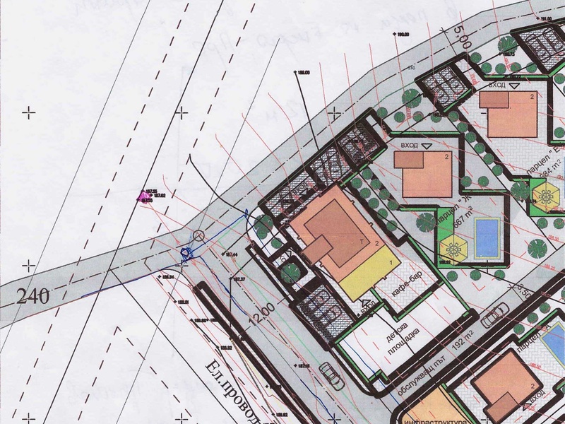 Продаётся земельный участок площадью 5124 кВ.м. В регуляции, с готовым проектом под строительство 6 двухэтажных домов с дополнительными участками по 6 соток каждый и 4 этажный квартирный дом, которая включает в себя сауну, магазины, кафе и апартаменты. Прекрасный вид на море. Разрешение на строительство со всеми проплачеными налогами. Участок расположен в 17 км от Варны, в местности Близнаци. 15 мин езды от центра Варны. Цена 179340 евро.