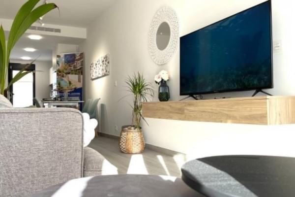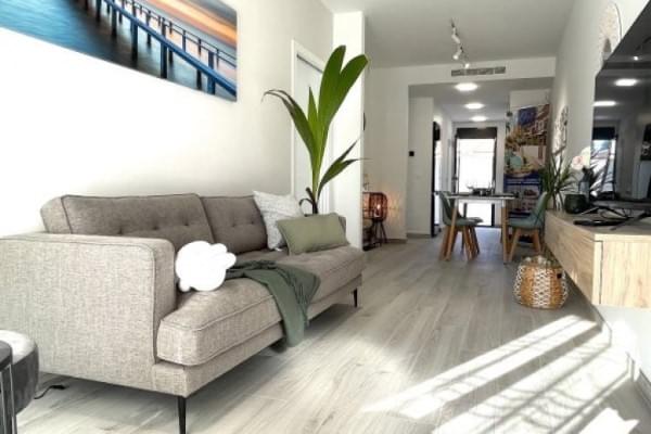 Красивые бунгало с 2 спальнями и 2 спальнями в Сантьяго-де-ла-Рибера. Они доступны в двух вариантах: Первый этаж с частным садом и террасой.Входная дверь открывается в большую гостиную открытой планировки с обеденной зоной, а наверху находится большая кухня - идеальное место для "тапас" в течение дня. Наслаждайтесь естественным солнечным светом благодаря большим раздвижным входным дверям, пропускающим внутрь массу света. Сбоку находится семейная ванная комната с раковиной, туалетом и душем и 2 просторные спальни - главная спальня с ванной комнатой.Верхний этаж с соляриемЛестница ведет на верхний этаж с большой частной террасой, выложенной плиткой, с входной дверью в дом. Как и в случае с моделями первого этажа, здесь есть просторная гостиная/столовая открытого плана с большой кухней - 2 спальни рядом (главная с ванной комнатой). К частному солярию на крыше ведет выход из задней части кухни.Очень близко к морю.