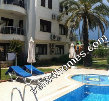 Квартира с двумя спальнями и гостиной в ухоженном жилом комплекса в самом сердце популярного города-курорта Сиде. Вид на горы и бассейн.