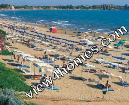 До пляжа 600 м. Ходит бесплатный микроавтобус на пляж. Пляж песчаный. Вход в море удобный для детей!