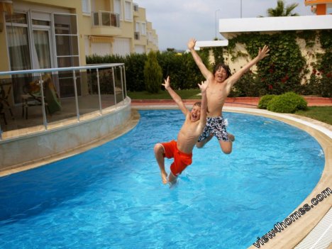 Площадь участка 500м2. С верхней террасы дома открывается великолепный вид на море и горы. С террасы первого этажа (20м2)открывается великолепный вид на собственный бассейн (32 м2)