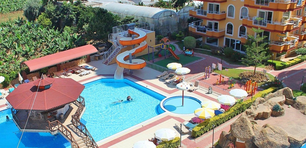 В шаговой доступности от комплекса находится несколько продуктовых супермаркетов, есть кафе, аптека. Каждую неделю рядом с комплексом проходит продуктовый и вещевой базар, где можно купить свежие фрукты и овощи, а также текстиль и сувениры. Рядом находится автобусная остановка, что дает возможность удобно добираться до центра города Аланья, который находится в 15 км.