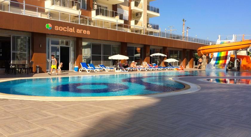 Комплекс также имеет развитую инфраструктуру и самое главное - собственный пляж с шезлонгами и зонтиками!