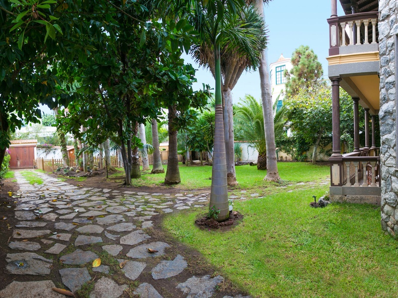 Возвращаясь к внешней стороне мы видим вход в сад, а также мини-деревянный дом для детей, навес для инструментов, дровяной сарай и конура с пространством для двух собак. Ежедневная работа в течение 15 лет позволила иметь и наслаждаться садом с типичной флорой Канарских островов: с деревьями Dragon tree, Mocanes, пальмы, эксклюзивный сад кактусов и пруд с рыбой и мини-водопад.