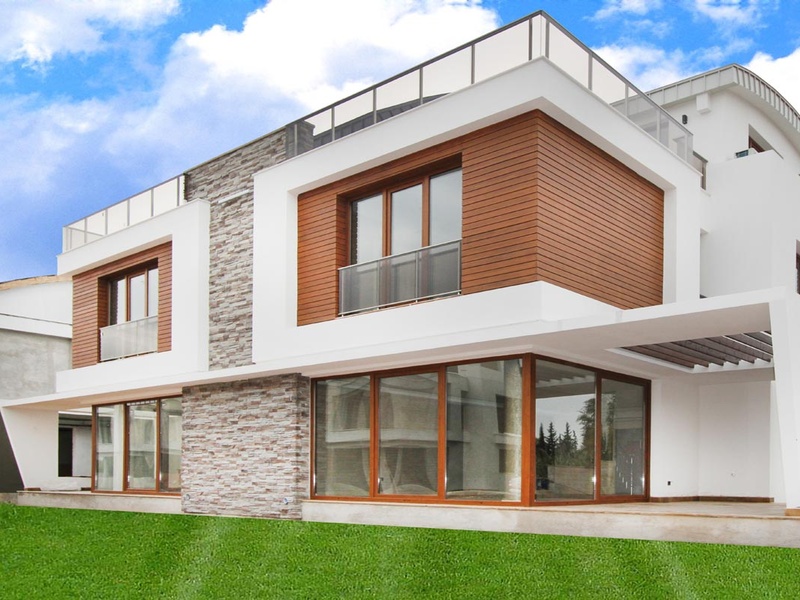 2) Улучшенный вариант включает в себя кухонную бытовую технику (плита, духовка, вытяжка, микроволновая печь), мебель, инверторные кондиционеры в каждой комнате, камин, сауну, бар, джакузи, кладовую комнату, специальная отделка из камня, лед освещение, шкаф в гардеробной, система умный дом, специальные люстры.