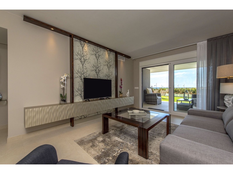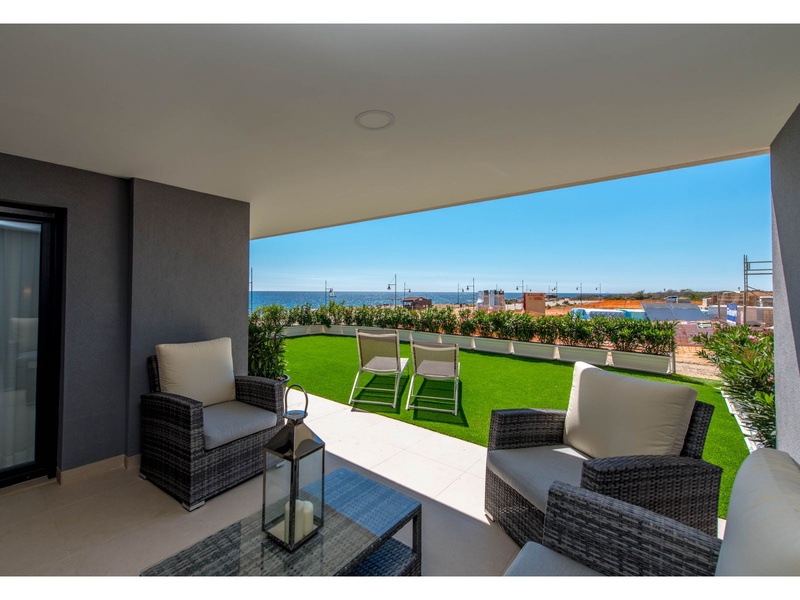 Апартаменты в новостройке на первой линии от моря, с панорамным видом в здании на стадии строительства. Современное жилье с 159,25 квадратных метров общей застроенной площади, разделенной между 2 спальными комнатами, 2 ванными, гостиной, кухней, 2 террасами занимающими 24,30 квадратных метра общей площади и частными садами с площадью 62,65 квадратных метров. В стоимость жилья входит паркоместо в подземном паркинге и кладовая. Апартаменты с двойной ориентацией, с потрясающим панорамным видом на Средиземное море из главной спальни и гостиной, и с видом на район Пунта Прима с другой спальни и кухни. Высококачественные строительные и отделочные материалы. Кухня и ванные комнаты полностью меблированы и оснащены бытовой техникой, встроенные шкафы в спальных комнатах, входная дверь бронированная из замком безопасности, моторизованные жалюзи, двойное остекление типа CLIMALIT, горячая вода с возобновляемой энергией, полы с подогревом в ванных комнатах, канальное кондиционирование воздуха и отопление, видео-домофон, предварительная установка сигнализации. Закрытый жилой комплекс с частными общими садами, 3 бассейнами (инфинити, с подогревом и детским), джакузи, детской площадкой, спортивной площадкой и подземным паркингом. Десятиэтажное жилое здание с лифтами, доступами для людей с ограниченной подвижностью и системой безопасности. В непосредственной близости от всевозможных услуг, ресторанов, супермаркетов, аптек, автобусных остановок, такси и т.д.