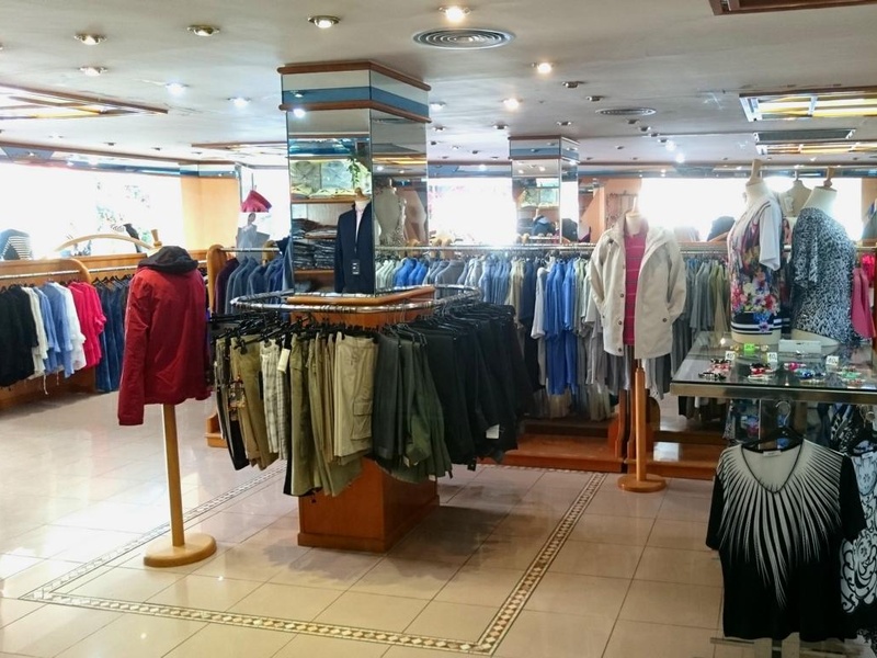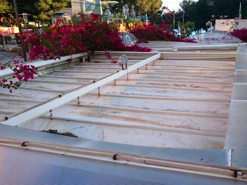 Die circa 100m² große Terrasse liegt unmittelbar an einer Straße, an welcher in den Saisonmonaten, sehr reger Publikumsverkehr herrscht. Hier finden Sie im Bodenbereich champagnerfarbene Fliesen vor. Im Innenbereich des Ladenlokals sind die gleichen Fliesen gewählt worden, allerdings in einer glänzenden Variante. Der komplette Terrassenbereich ist mit einer aufwendigen Markisenkonstruktion überdacht. Hier stellen Sie Ihre Ware vor der Sonne geschützt auf. Die Fenster mit Holzfensterrahmen sind einfach verglast. Im Innenbereich steht Ihnen sehr viel Platz zur Verfügung und die derzeitige Ausstattung, vermittelt einen wertigen Eindruck, welcher sich von den übrigen Geschäftslokalen deutlich absetzt. Der Lagerbereich ist beige gefliest. Das Duschbad ist weiss gefliest. Das Dach ist mit einem Flachdach mit Gefälle gestaltet. Hier finden Sie auch die große Klimaanlage vor.