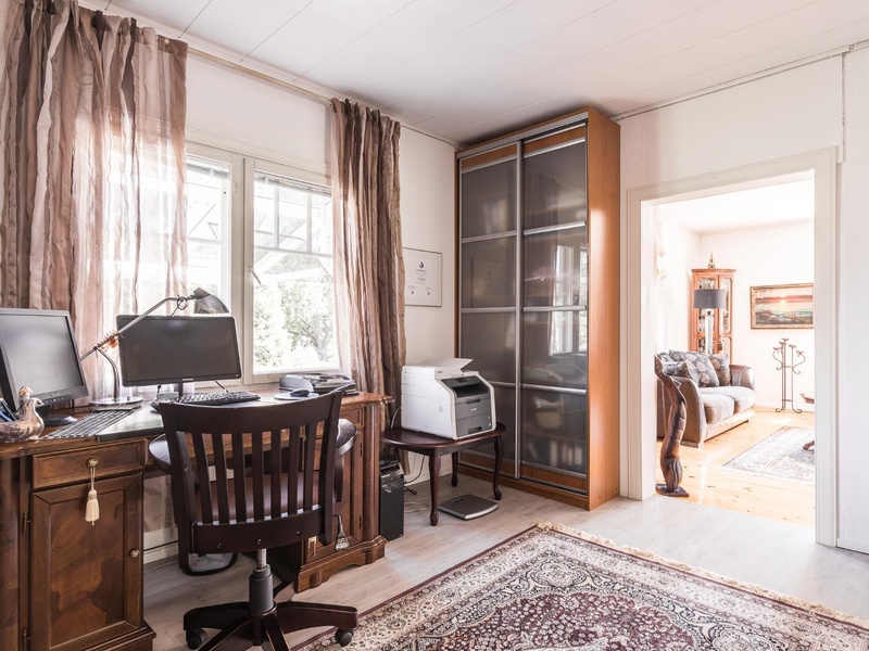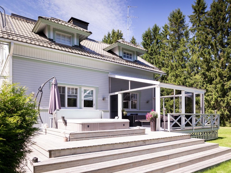 Прекрасно ухоженные участок-парк и хороший, наполненный теплом и уютом дом завладеют твоим сердцем. Здесь есть всё для комфортной и спокойной жизни вблизи природы. Если любишь немного люкса, то найдешь во дворе солнечную застеклённую террасу, где можно проводить свои свободные часы или праздновать вместе с друзьями, наслаждаясь теплом уличного камина. Из джакузи открывается шикарный вид на реку, а на берегу расположена сауна на дровах, домик для гриля и гранитное кольцо для открытого костра. На собственном причале можно загорать или ловить рыбу, так как река Кюмиёки излюбленное место для рыбной ловли, это знал даже русский царь, который приезжал сюда на рыбалку и отдых. Большой теплый гараж 122 кв.м и крытая автостоянка на две машины дают дополнительную возможность использовать эти помещения в предпринимательских целях. До Хельсинки 110 км доберешься за 1 час по новой прекрасной автомобильной трассе, до границы с Россией - 63 км.