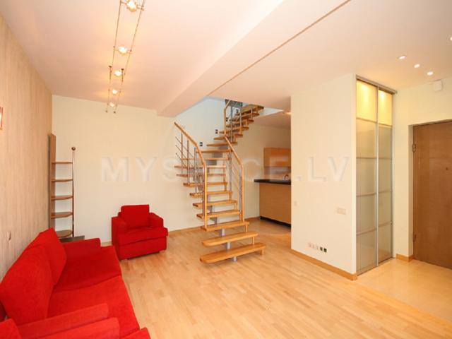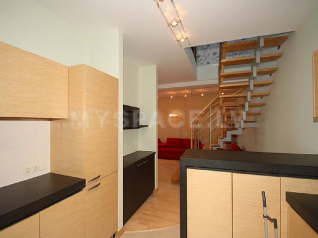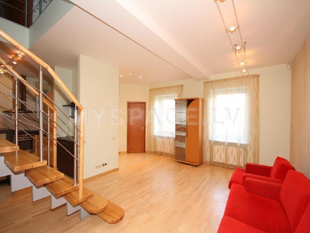 Сдается солнечная, дизайнерская-мансардная квартира в двух уровнах в центре города. Довоенный дом, площадь 96 кв.м., 5/6 этажа. Свежий ремонт. Ламинат, стеклопакеты, новые радиаторы. В внижнем этаже находится гостиная с кухней (студия). Встроенная кухня с посудомоечной машиной, стиральной машиной, с просторным холодильником с морозильной камерой, газовая плита с духовкой, вытяжка. Как и на этаже есть отдельный гостевой туалет. В гостиной есть диван, кресло и угловая полка. На втором этаже находится спальня со встроенным шкафом и двуспальная кровать, рабочий кабинет или детская комната и просторная ванная комната с джакузи. Квартира очень тихая и находится в двух минутах ходьбы от Верманас сада. Закрытый подъезд, сигнализация, видеонаблюдение. Это место для парковки и хороший поток общественного транспорта. При подписание контракта плата за первый месяц и гарантийный депозит в размере одного месяца.