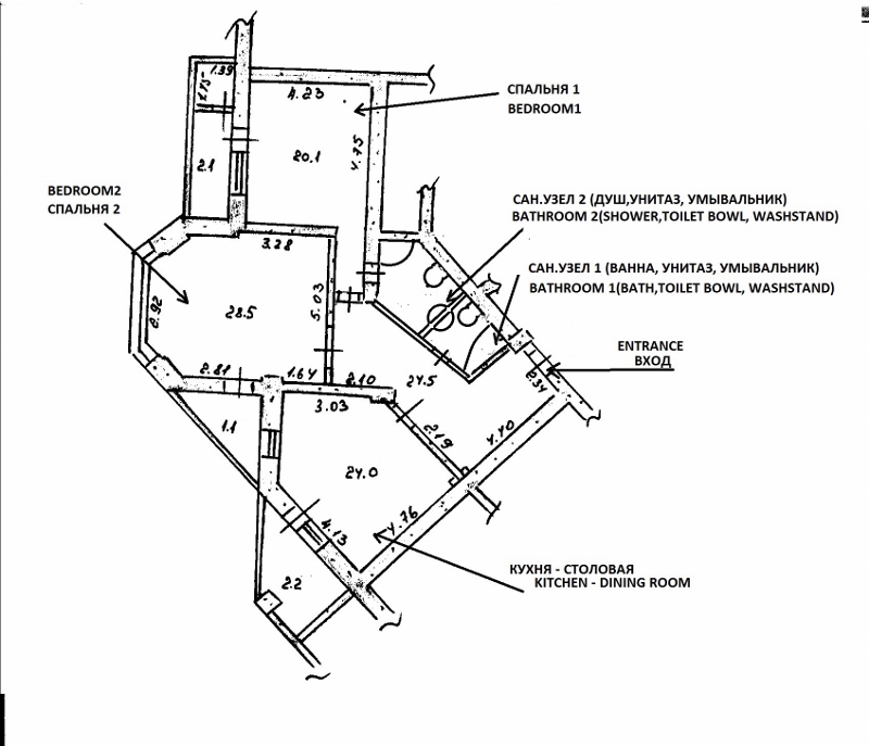 two bedroom apartment 111м2 ttl, 28 и 20 м2 - bedrooms, 24m2 kitchen-dining room, house year of constr=2009, finishing works of apartment=2011 - in good condition. 2 bathrooms. independent gas heating/hot water boiler. 3 air conditions.