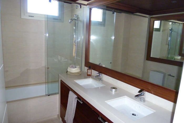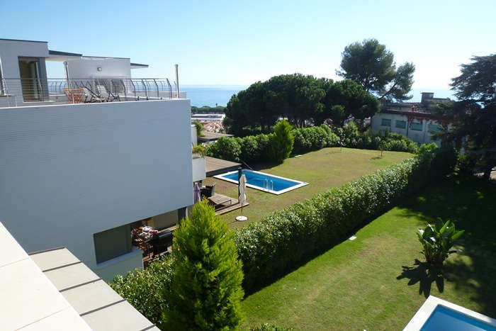 На первом этаже просторная гостиная с выходом в сад и к бассейну, кабинет, полностью экипированная кухня и ванная комната.