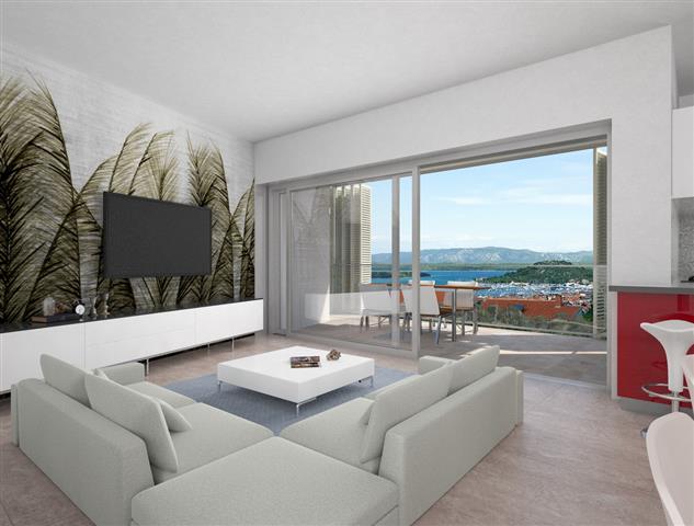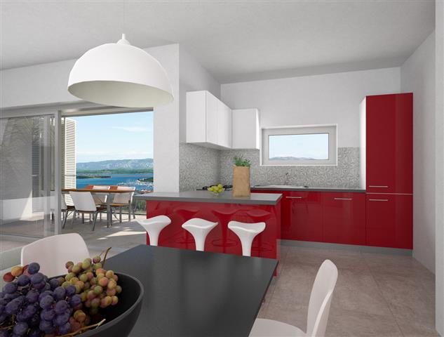 The villa has four apartments located on the island of Murter in the village of Murter, on the northern slopes of Raduč, overlooking the Kornati islands. The villa has four apartments of 71.75 m2 to 86.36 m2. Each apartment has two bedrooms, a spacious living room with dining area, a bathroom with a toilet and a large terrace. Each apartment has two parking spaces and cellar basements while the apartments on the ground floor have swimming pools of 24 m2 and 14 m2 and their own gardens. The price of individual flats ranges from 220,000 EUR to 245,000 EUR. The sea is less than 500 m away and the facility is close to all the necessary facilities.