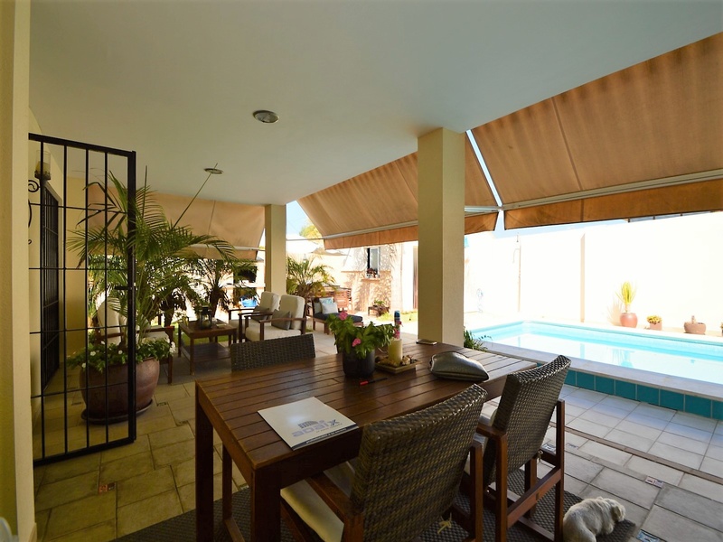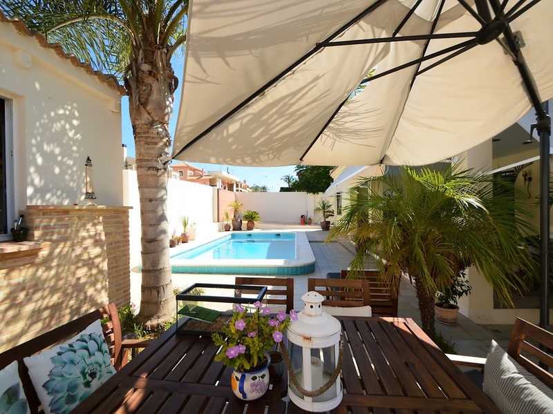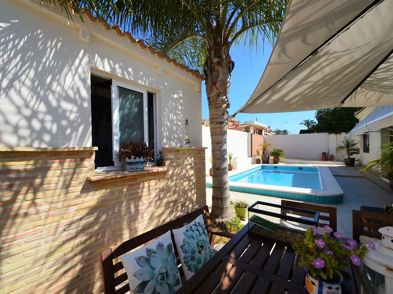 Вилла на продажу в Торревьехе, в элитном жилом районе Агуас Нуэвас. Одно-этажный дом с большой гостиной с обеденной зоной и зоной отдыха, просторнейшей отдельной кухней, тремя спальнями и тремя ванными комнатами. Вилла располагается на земельном участке площадью 428 квадратных метров с частным бассейном, зоной барбекю, финской сауной с туалетом и душем, и несколькими зонами отдыха в окружении красивого сада. Вилла построена в 2009 году, находиться в безупречном состоянии, располагает полной меблировкой и оснащена бытовой техникой, кондиционированием воздуха, раздвижными окнами со стеклопакетами; отделочные материалы и сантехника высокого качества. Месторасположение в элитном жилом районе в пригороде Торревьехи, в непосредственной близости к практически любым услугам. Несколько супермаркетов и множество магазинов, образовательных и спортивных центров и учреждений, больница, офисы всех типов и т.д. находятся в 5-ти минутах ходьбы. Центр города, пляж Ла Мата, пляж Лос-Локос и природный заповедный парк Лагунас-де-Ла-Мата и Торревьеха находятся в менее чем 5-ти минутах езды машиной.