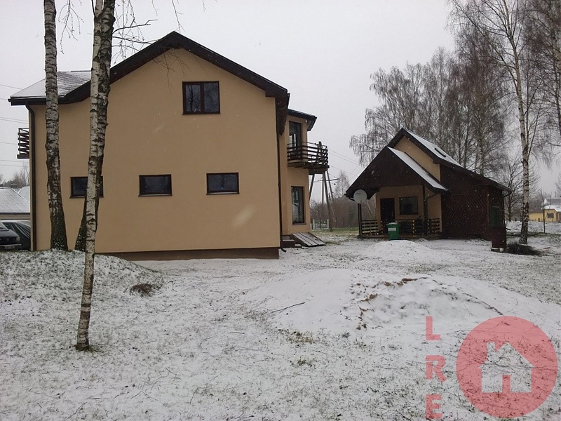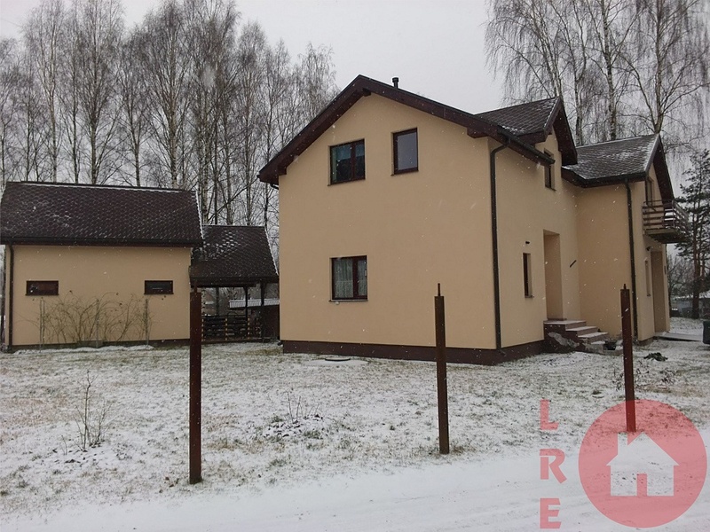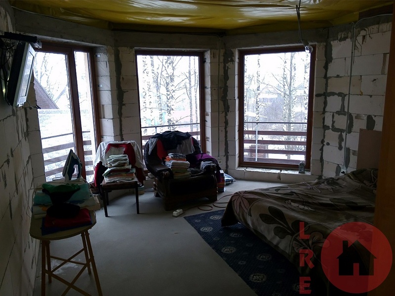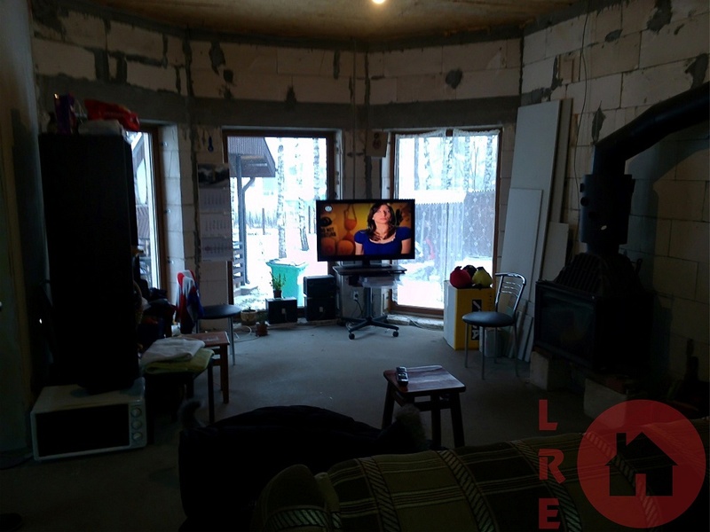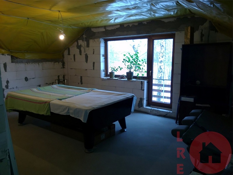 Частичная отделка, новостройка дом сдан в эксплуатацию в 2011 году, 2-х этажный дом 115 кв.м., 5 комнат, земля 1480 кв.м., 2 комнаты полностью отремонтированы, сан узел совмещённый, новая сантехника, деревянные стеклопакеты, 2 балкона, полы с подогревом, 3 -х фазное электричество, отопление - тепловой насос, большой гараж на две машины 48 кв.м., высота 3.80 метра, хозяйственная постройка – баня 56 кв.м., благоустроенная территория, на участке много растущих берез, место для жарки мяса, камин, хорошая подъездная дорога, рядом остановка общественного транспорта, имущество без налоговых долгов, земельная книга, мы поможем вам оформить кредит.
