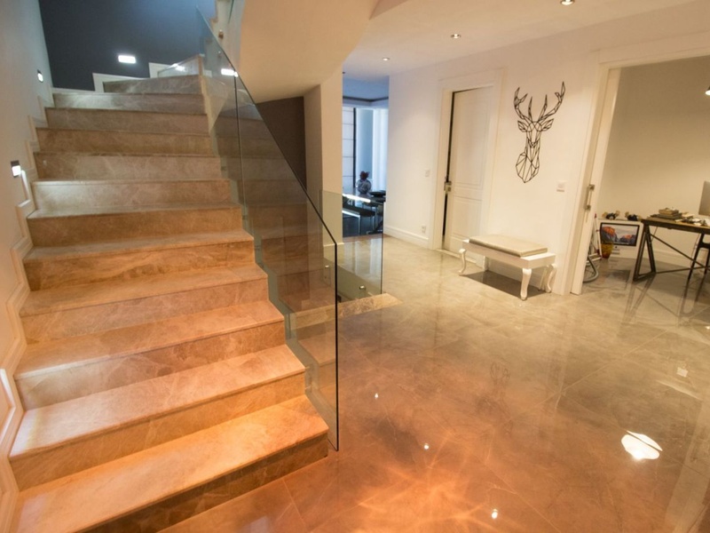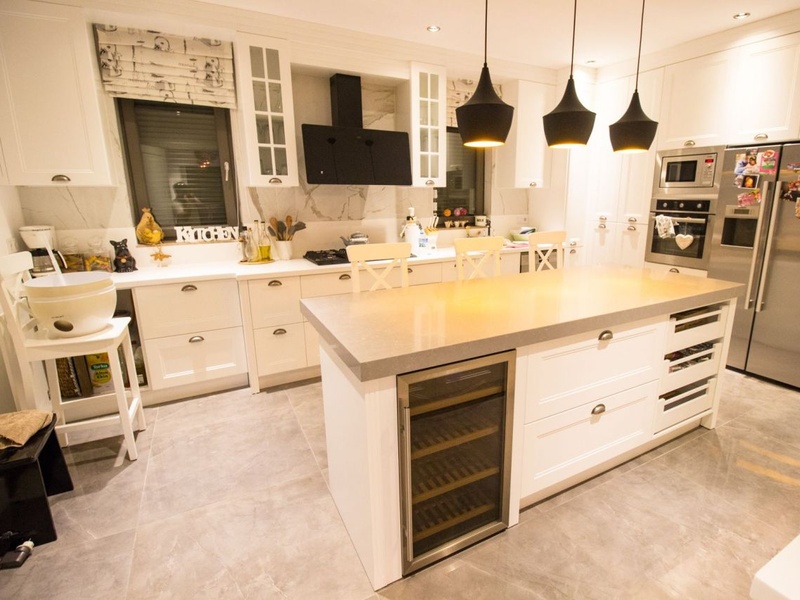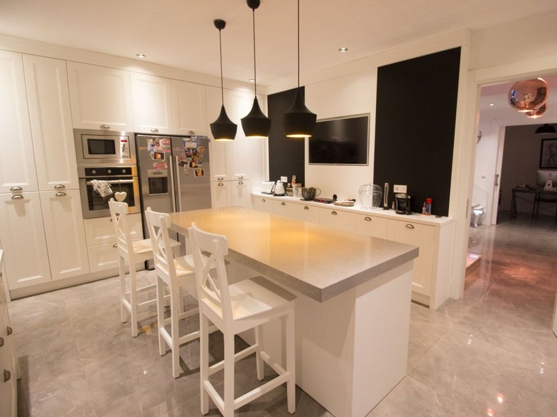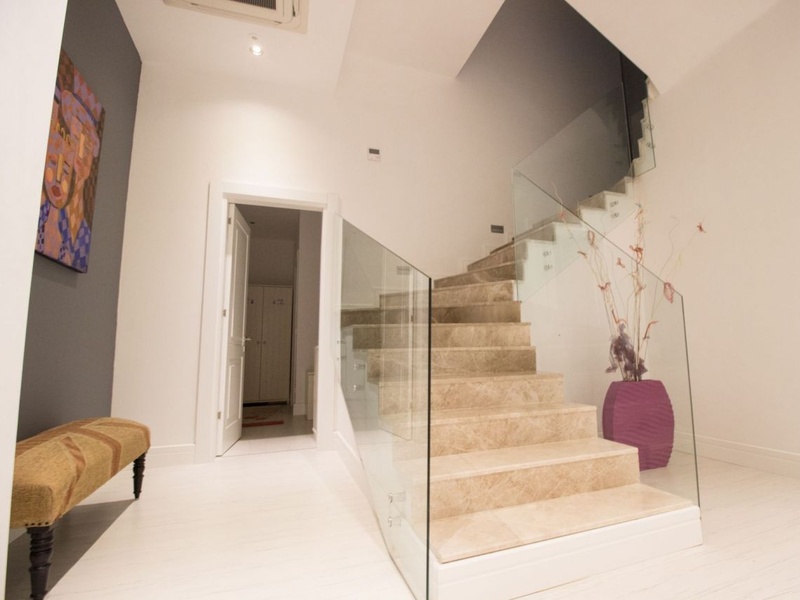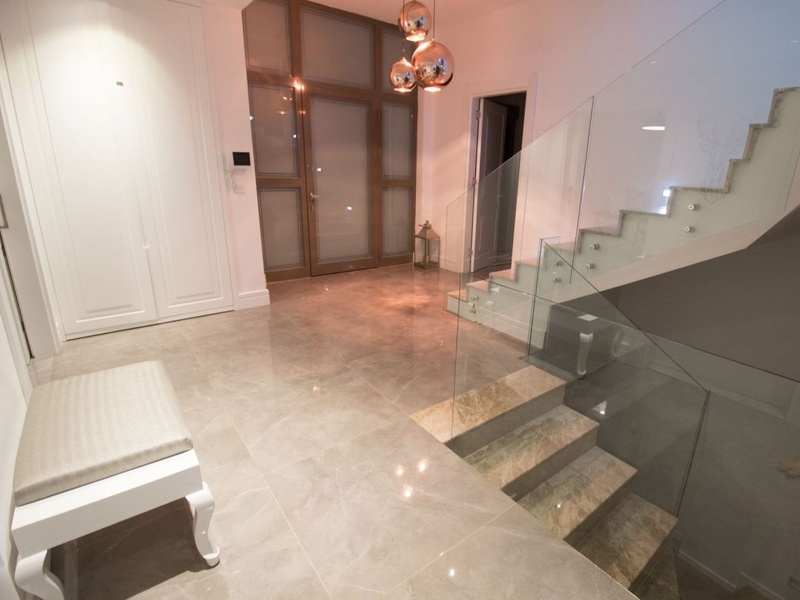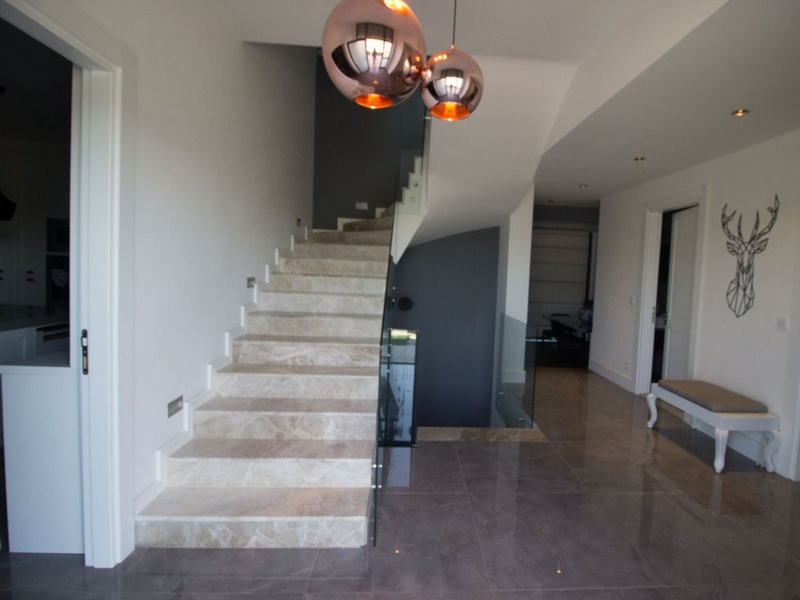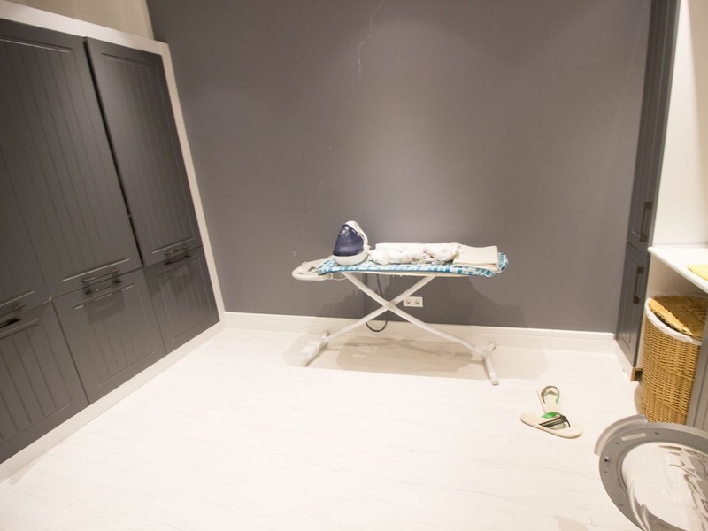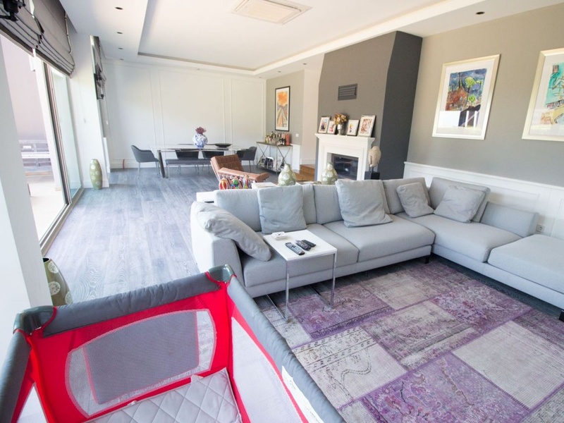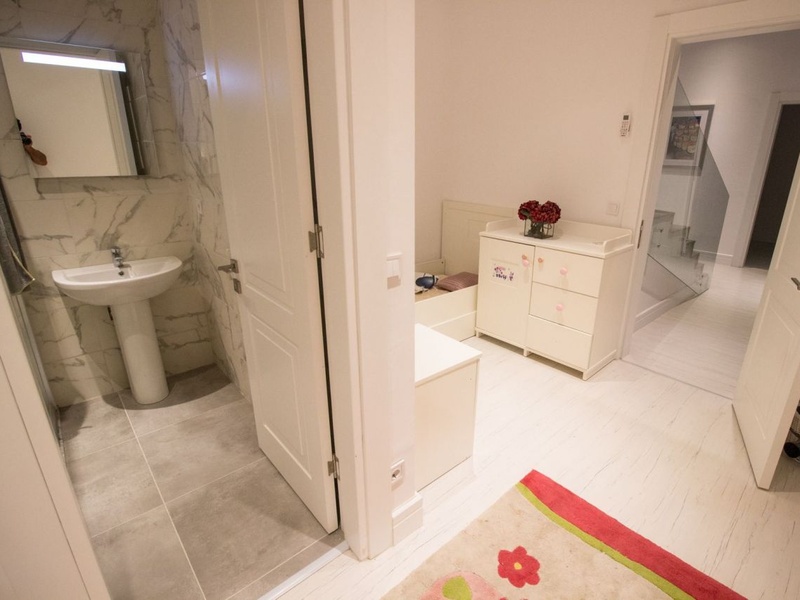 Дом имеет 550 кв м, 4 этажа, гараж и большой сад. Кухня и гостиная расподоженв на первом этаже, на цоколе есть 2 спальни и сауна, а так же хозяйственные комнаты. На втором этаже - 3 спальни с собственными гардеробными и санузлами, на третьем этаже - спальня, просторная терраса и санузел. Над интерьером работал частный дизайнер. Вилла принадлежит частному лицу.