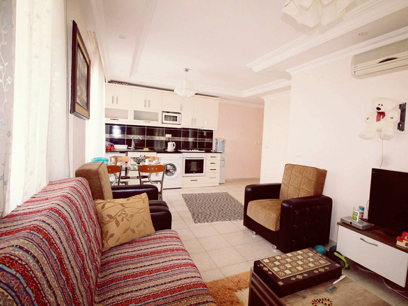 Квартира с 1 спальней в центре Аланьи. Недалеко, в пешей доступности городские объекты и пляж. В квартире установлена хорошая сантехника, душевая кабина, стальная входная дверь, кухонная мебель. Продается полностью меблированной. На территории есть бассейн.
