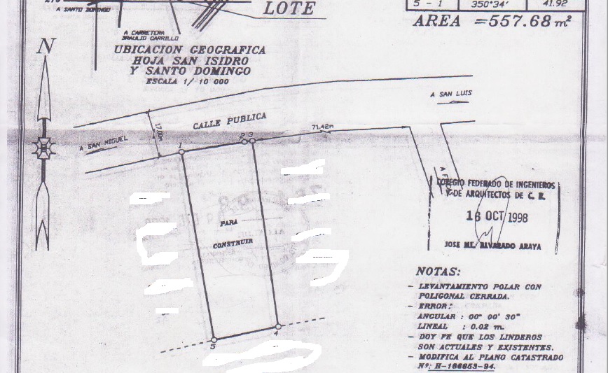 Lot for sale with nice Mountain View, San Miguel de Santo Domingo de Heredia, 557 sq mtrs, 14 mts front. All services available, near San Miguel center and Route 32. Quiet area. Permit to build two houses o two apartments. ¢ 57,000,000 Call to make appointment cqinternacional@gmail.com, Skype: cibercr Cel: 8365-9256, Facebook/CQ-Properties