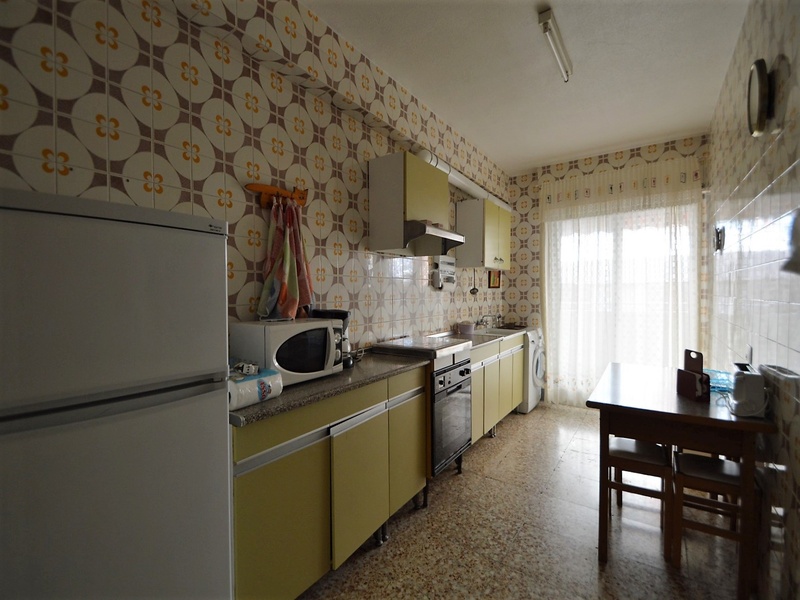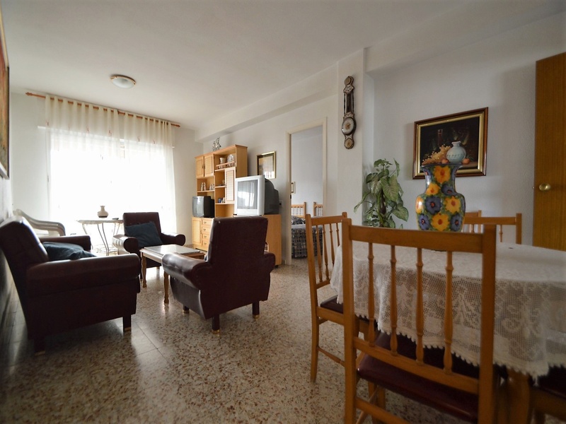 Квартира на продажу в Торревьехе, расположена на второй линии от моря, всего в 100 метрах от пляжа Кала дель Палангре. Квартира располагает 109 квадратными метрами построенной площади, разделенной между тремя большими спальнями, просторной гостиной, одной ванной комнатой, отдельной кухней и очень большой террасой с выходом на неё из гостиной и из кухни. Имеется вся необходимая мебель и техника - все в очень хорошем состоянии. Квартира очень светлая, со всеми окнами на улицу, а также очень свежая даже в самые жаркие месяцы лета, благодаря перекрестной вентиляции из-за ее двойной ориентации с террасой и окнами одной спальни, обращенными к северу, и окнами двух других спален, обращенными на юг. Квартира расположена на третьем этаже пятиэтажного здания с лифтом. Район предлагает широкий спектр всех видов сервиса и услуг. Всего в нескольких минутах ходьбы находятся два самые знаменитые пляжи Торревьехи — Ла-Плайя-де-Лос-Локос и Ла-Плайя-дель-Кура.