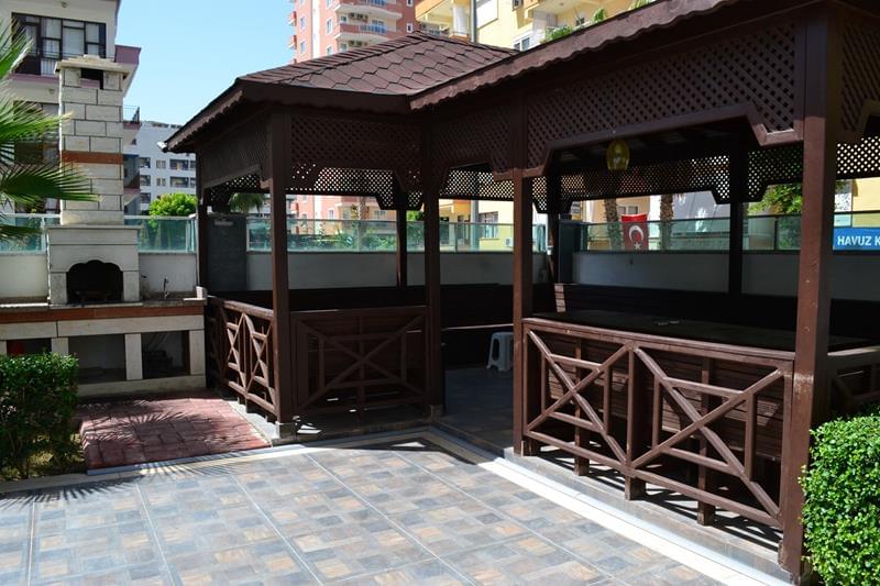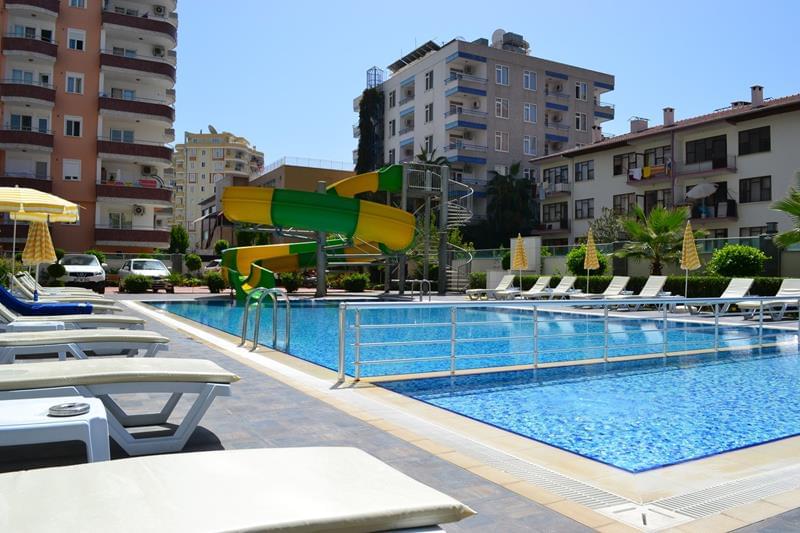 Квартира 1+1, 1 спальня, гостиная, кухня американского типа со встроенными шкафами, оборудованный санузел, балкон. Инфраструктура комплекса: • Открытый бассейн с водными горками • Детский бассейн • Фитнес-зал • Сауна • Хамам • Ухоженная зеленая территория • Парковка • Интернет • Спутниковое телевидение • Пожарная лестница • Лифт • Электрогенератор • Консьерж