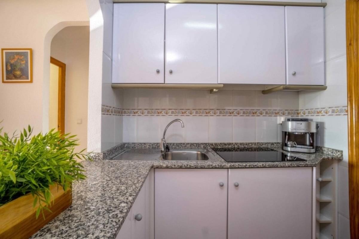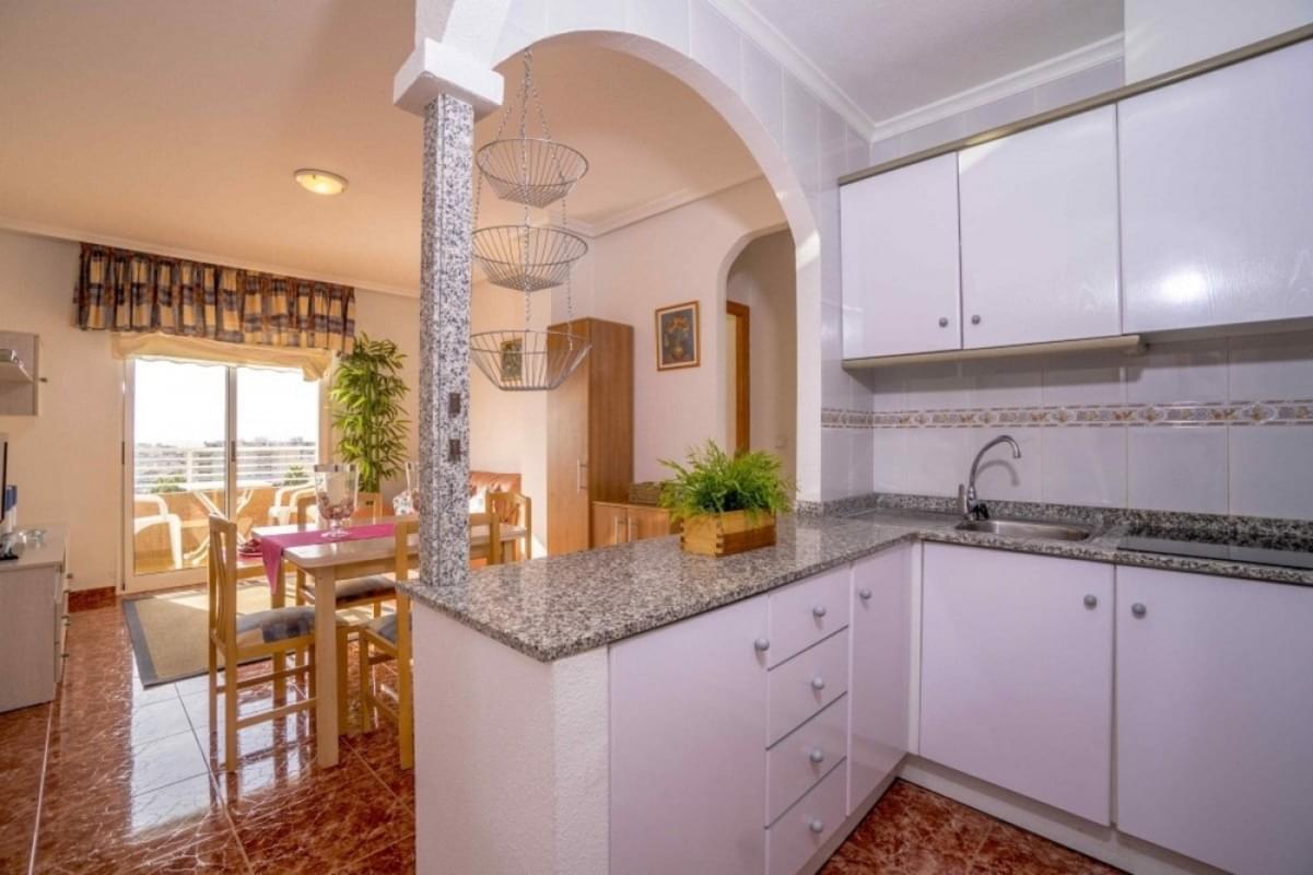 Квартира расположена в чудесной резиденции Calas Blancas del Mar II на пятом последнем этаже. Жилая площадь квартиры составляет 58м²: две отдельные спальные комнаты, шикарный салон с выходом на террасу 6м², полностью оборудованная мебелью и бытовой техникой (керамическая варочная поверхность, вытяжка, холодильник, микроволновая печь) кухня и ванная комната. Небольшое помещение для стирки белья. Квартира светлая и соленная. С террасы открываются красивые виды на город и на Plaza Europa.