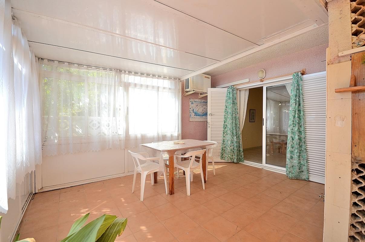 Бунгало площадью 50м². Перед домом свой собственный участок-терраса — 25м² с подсобным помещением, где удобно будет хранить пляжные принадлежности (шезлонги, зонтики) или велосипеды и т. д. В доме просторный холл с выходом на улицу, две спальные комнаты (в главной имеется встроенный шкаф), полностью оборудованная кухня и ванная комната.