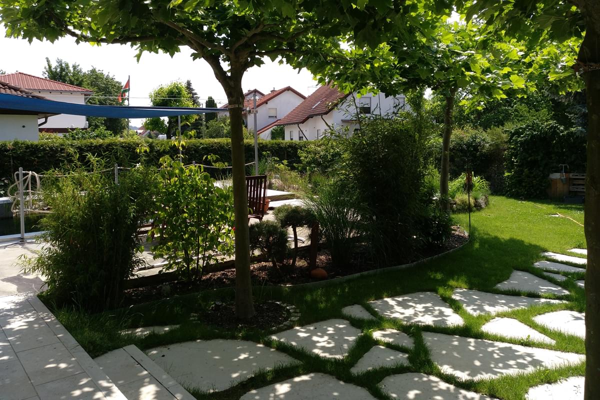 Die Botanik des ca. 920 m² großen Grundstücks wurde rund um das ganze Haus extrem aufwendig angelegt und rekultiviert. Besonders hervorzuheben ist neben dem vielfältigen "Naschgarten", mit einer Vielzahl an regionalen Früchten und durchdachten Außenbepflanzung auf der Nordseite, die in sich stimmige Artenvielfalt rund um dem Schwimmteich.