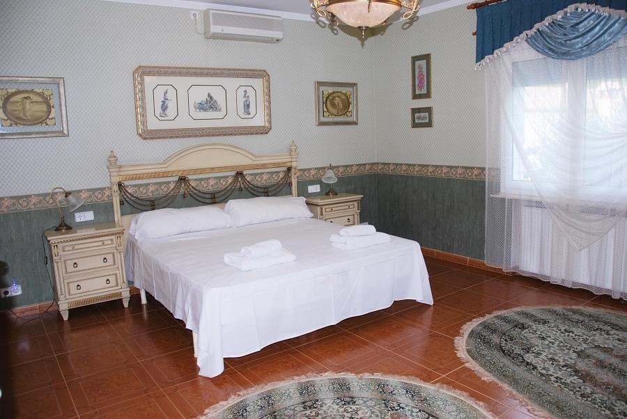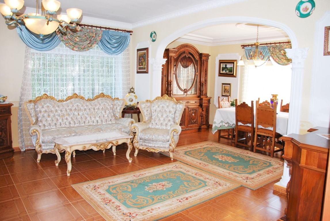 В собственности 22 года. Основной дом, (построен из кирпича, снаружи облицовочный натуральный камень): 300 кВ.метров, 2 этажа, 4 спальни, 2 зала, 2 камина, 2 сан узла, кабинет, кухня 10 метров, подвальное помещение: винный погреб. Солнечные батареи. Красивые просторные лоджии. В каждый комнате установлены кондиционеры, даже в коридоре. Большая терраса. Два въезда на территорию. Танцевальная площадка.
