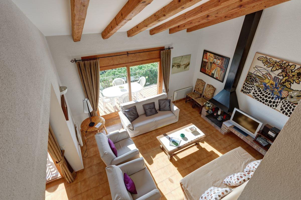 На среднем этаже имеется гостиная с камином и доступом к большой террасе (около 18 м2) с потрясающим видом на море и побережье, а также отдельная кухня, прачечная и гостевой туалет.