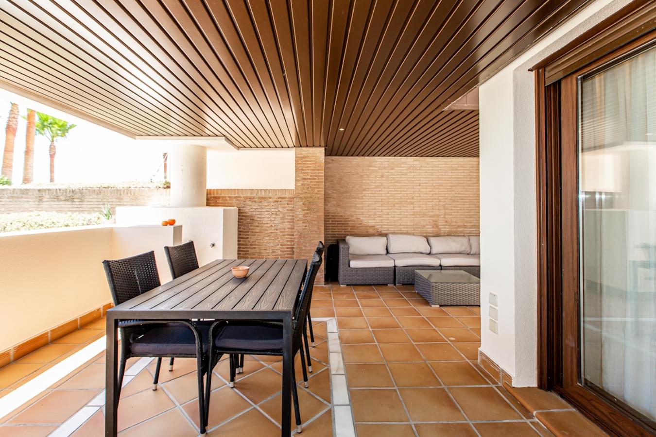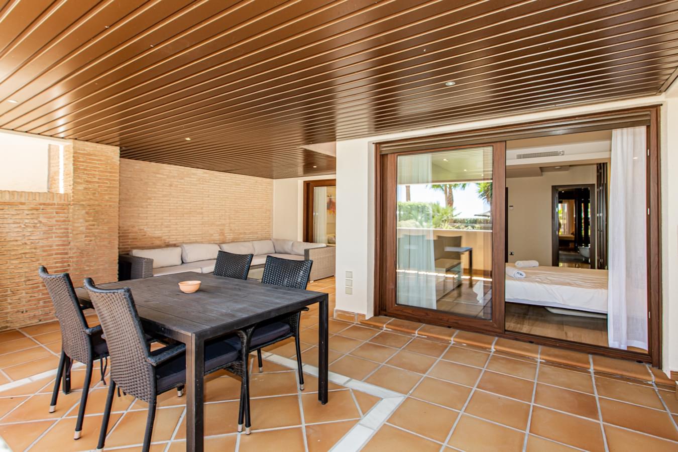 Exclusive apartment built and equipped with top quality materials and luxury finishing including Marble Flooring, Domotics and Full Equipped Kitchen with Granite Worktop, among others. This stunning 2 Bed, 2 Bath Apartment on the Ground Floor offering great privacy. HIGH RENTAL POTENTIAL. Situated in the newly built luxurious beachside development next to the Kempinski Hotel and the fashionable Laguna Village, between the internationally known Puerto Banús in Marbella and Estepona called the New Golden Mile, with a boardwalk that will connect you to Estepona in a few minutes walk, where you will find all kind of amenities and leisure areas, and 5 minutes drive to the nearest Golf course. This privileged and quiet Urbanization offers illuminated tropical gardens and 2 outdoor swimming pools for adults and children, with leisure areas where you can find a heated indoor pool, Gym, Spa, covered paddle court with glass walls and indoor space for social activities as well as direct and exclusive access to the beach make the apartment an ideal solution for first residence as well as to enjoy a second holiday residence with unique landscape and fantastic rental potential. The access to the complex is controlled at all times by a security booth. Private parking and storage room included.