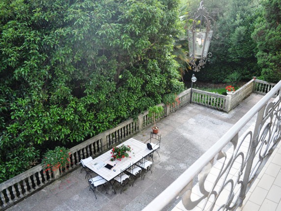 The villa has a basement floor in which all rooms have vaulted brick ceilings and are well kept. They are connected with the greenhouse, which in turn is connected with the garden. The ground floor includes a large entrance hall with wardrobe room, double living room with fireplace, dining room and bathroom, on the first floor; double bedroom with private bathroom and corridor area, plus three additional bedrooms and a bathroom. On the second floor of the villa, an independent, mini-apartment has been obtained. From the apartment it is possible to reach the villa’s turret with panoramic terrace. At present the property has two covered places for the car and three uncovered places; the residual build volume gives the possibility to increase the number of covered parking spaces up to 6.