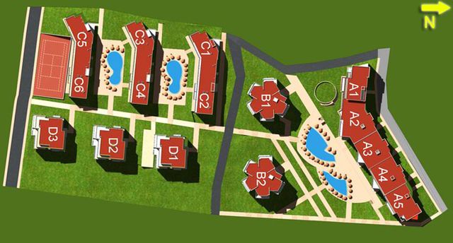 - огромные площади озеленения делают комплекс уютным и располагающим к спокойному отдыху.