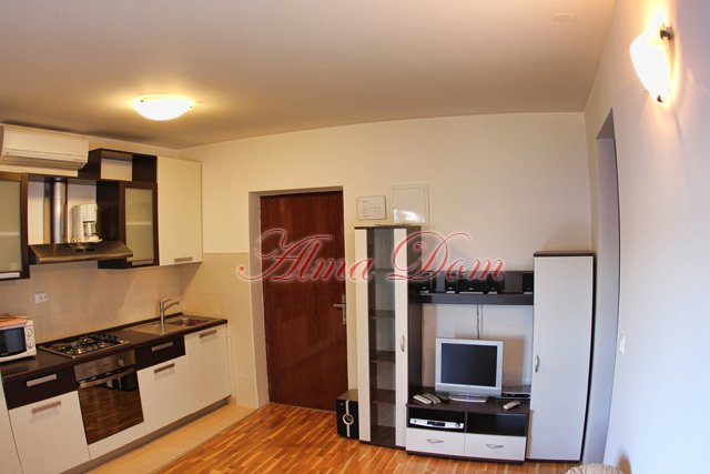 Первый этаж. Квартира площадью 46 ам.кв. Одна спальня, гостиная, кухня, ванная, терраса. Место на парковке. Кондиционеры.