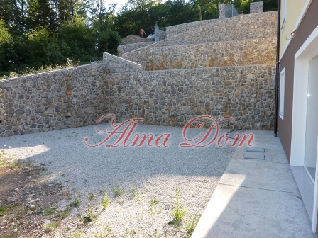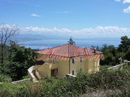 ID: 213862 Вилла с видом на море. Продается вилла над Опатией с видом на море и горы. Дом трехэтажный. Первый этаж: большая таверна с камином и террасой со спуском к бассейну величиной 15 на 6 метров. В саду есть небольшой домик с душем и сан.узлом. на втором этаже (отдельный вход): кухня с гостиной, ванная, две спальни, терраса.На третьем этаже (отдельный вход): одна спальня, ванная, гостиная, кухня, терраса. Строительство дома полностью завершено снаружи. Необходима внутренняя отделка.