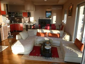 дом: 100 m², которые включают 2 люкса отдельные ванные комнаты (каждая для 2 +2 человек), гостиная с баром и камином, кухня полностью оборудована, столовая (зимой и летом), отдельная комната для квартиры (с кухней и ванной комнатой), гараж.Каждый номер имеет большую террасу с видом на весь залив . В доме есть бассейн 9x4 и whirpool.Зарплата:. 1000 кв.м. с оливковыми деревьями, лаврами, зеленые зоны, маршруты и стоянки + поток с водопадами и пруд