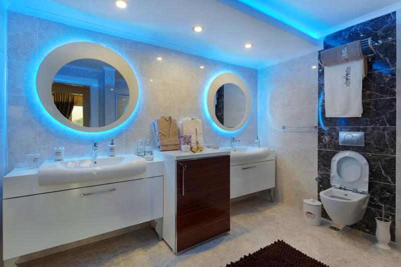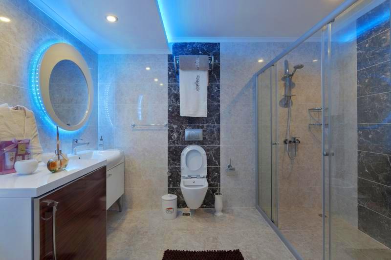 • В санузлах полный комплект сантехники, встроенная мебель и настенное зеркало