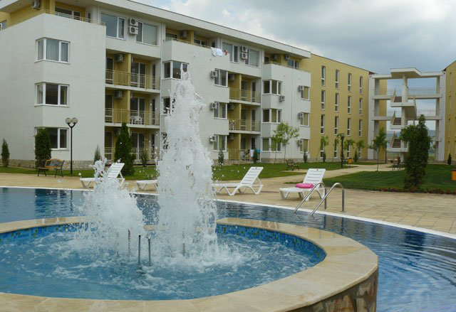Комплекс находится также на курорте Солнечный Берег возле аквапарка, самого большого на курорте. До лучшего на побережье пляжа – 800 метров, менее 500 м до центра курорта Солнечный берег. Отличная инфраструктура для отдыха внутри комплекса - три ресторана, бар, венский салон, 5 плавательных бассейнов для детей и взрослых со спасателями, магазины, сауна, фитнес зал, косметический центр, зубоврачебный кабинет, теннисный корт, охраняемый паркинг, рент-А-кар, гольф поле и мн. другое).