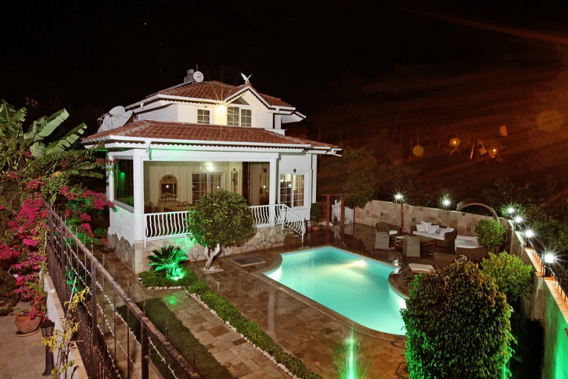 Отдельно стоящая вилла, общей площадью 500 м2, в тихом уголке Кемера среди гор. Двухуровневый дом с собственным бассейном, садом, зоной отдыха. Первый этаж состоит из салона, отдельной кухни, санузла и просторным застекленным балконом. Второй этаж состоит из двух спальных комнат с собственными оборудованными ванными комнатами. Одна комната с выходом на балкон, от куда открывается вид на бассейн и на горы.