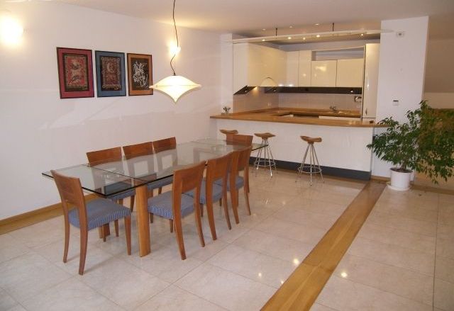 Просторная гостиная с камином, современный кухонный бокс, столовая, 2 спальни, 2 ванные комнаты. Полностью оборудована мебелью.