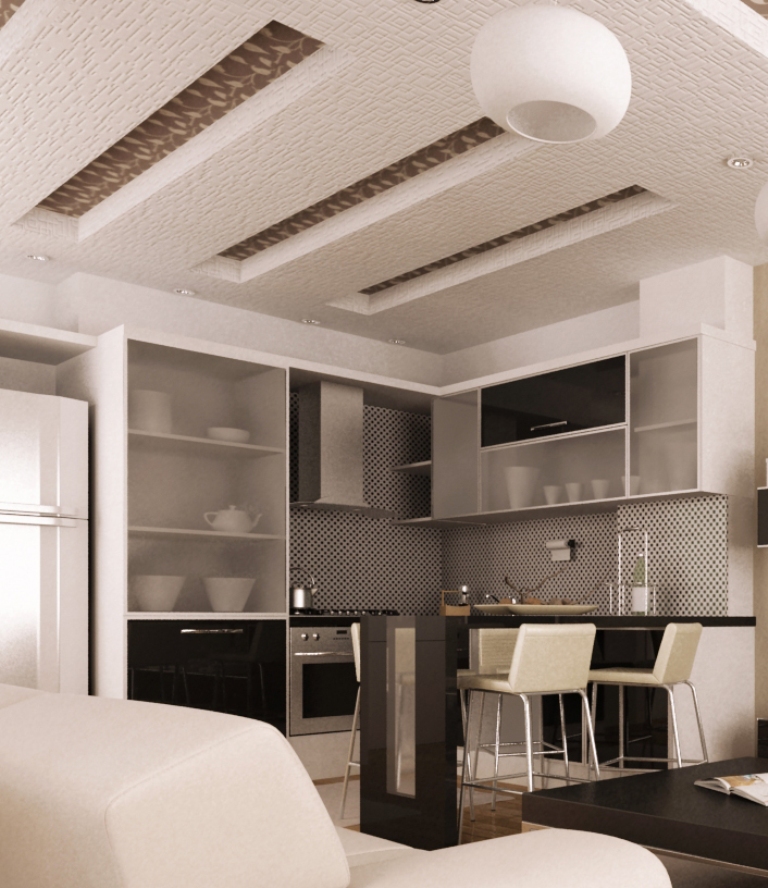 •         Потолки – шпаклевка, сверху покраска + подвесные потолки со встроенным точечным освещением;