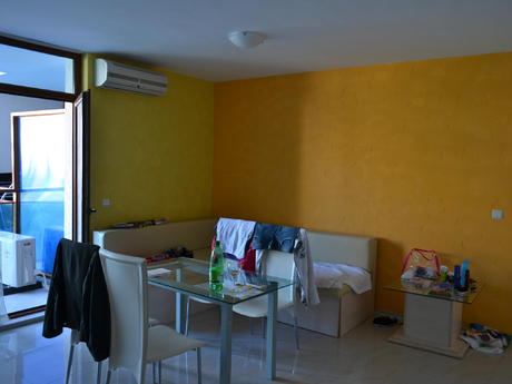 В этом замечательном комплексе мы предлагаем очень хорошее предложение. Полностью меблированная квартира с гостиной с кухней, спальня, ванная комната и два балкона. Он расположен на третьем этаже и имеет площадь 71 квадратных метров. Из балкона в гостиной открывается прекрасный вид на бассейн. Существует мини-кухня с плитой и вытяжкой, растягивающийся диван, обеденный стол с четырьмя стульями, большой плазменный телевизор с кабельным телевидением в гостиной, двуспальная кровать с прикроватными тумбочками в спальне. Есть балконы, как в спальне и гостиной и кондиционер только в гостиной.