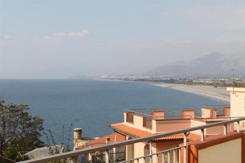 Калабрия Diamante. Предлагаем на продажу изысканный двухквартирный коттедж (2 этажа) с частным выходом к морю и ухоженным садом. Площадь коттеджа составляет 230 кв.м. На подвальном этаже находится кухня, комната отдыха и прачечная; на первом этаже располагаются гостиная, кухня, ванная комната, терраса 200 кв.м. и патио. На втором этаже - три спальни, ванная комната и застекленная терраса. С террас коттеджа открывается превосходный вид на море.
