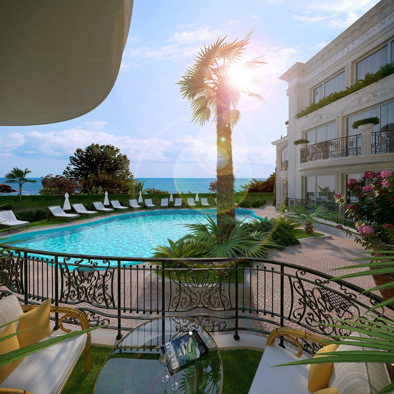 • Элитное здание на первой линии моря, огороженная территория, французская архитектура.