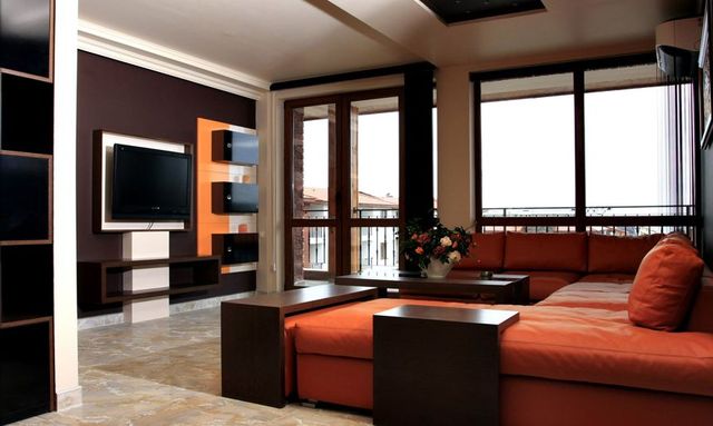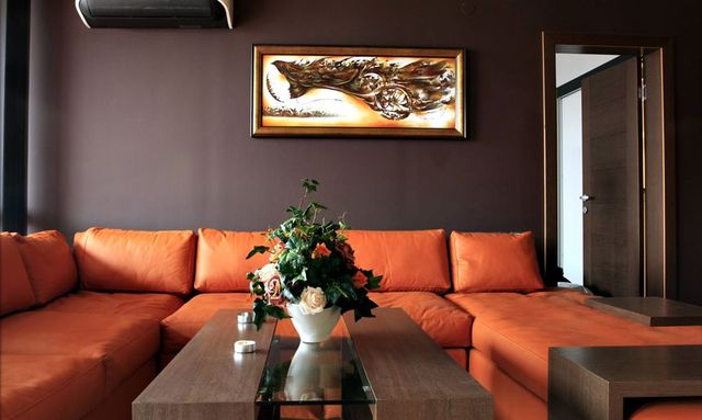 Элитная трехкомнатная квартира площадью 144 кв. м. оформлена в стиле модерн с использованием материалов высокого качества. Расположена в охраняемой элитной резиденции с бассейном.