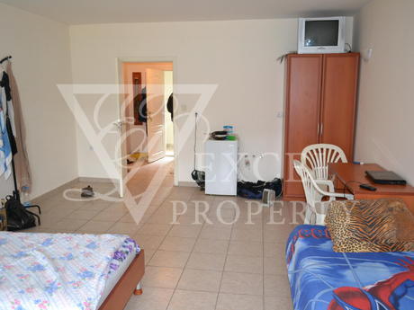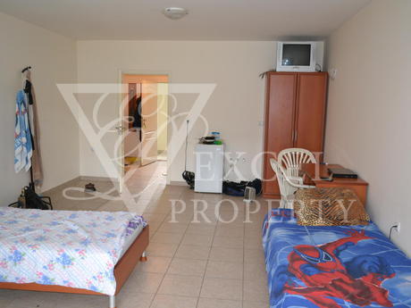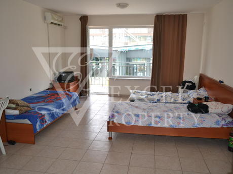 Студия частично меблирована и есть прихожая, ванная комната, просторная гостиная со всеми необходимыми связоми для размещения кухненский угалок и хороший балкон, с видом на восток . В настоящее время мебель в цену три односпальные кровати с ночные шкафы, шкаф, комод и стол. В ванной комнате есть душевая кабина, есть кондиционер. Студия нуждается в дополнительной мебели, но она довольно большая чтобы разместит диван-кровать и так будет предлагать комфортное пребывание для семьи из четырех человек. Еще одно большое преимущество в том, что плата за обслуживание составляет всего 200 евро в год и, расстояние до моря составляет всего 200 метров. Еще один плюс в том, что квартира только в 15 минут ходьбы от Несебр, область имеет автобусные остановки , магазины, рестораны, кафе, церковь и т.д.