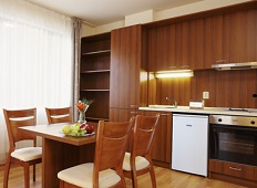 Мы предлагаем для продажи этой просторной студии 40 квадратных метров, на 3-м этаже. Он расположен в комплексе всего в нескольких метрах от подъемника. В комплексе есть бассейн, спа-салон, фитнес-центр, рестораны, паб, прекрасный сад. Студия состоит из просторной комнаты с балконом, оборудованная кухня, две большие односпальные кровати, диван, ванная комната с ванной. Подогрев электрическими радиаторами.Eсть изложения на западе. Eсть парковка. Цена € 26 400