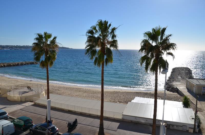 Квартира расположена на первой линии в Жуан Ле Пен Угловая квартира с панорамными видами Резиденция с консьержем Индивидуальное отопление 2 спальни, 2 душевых комнаты Уникальное расположение в 2-х шагах от моря!